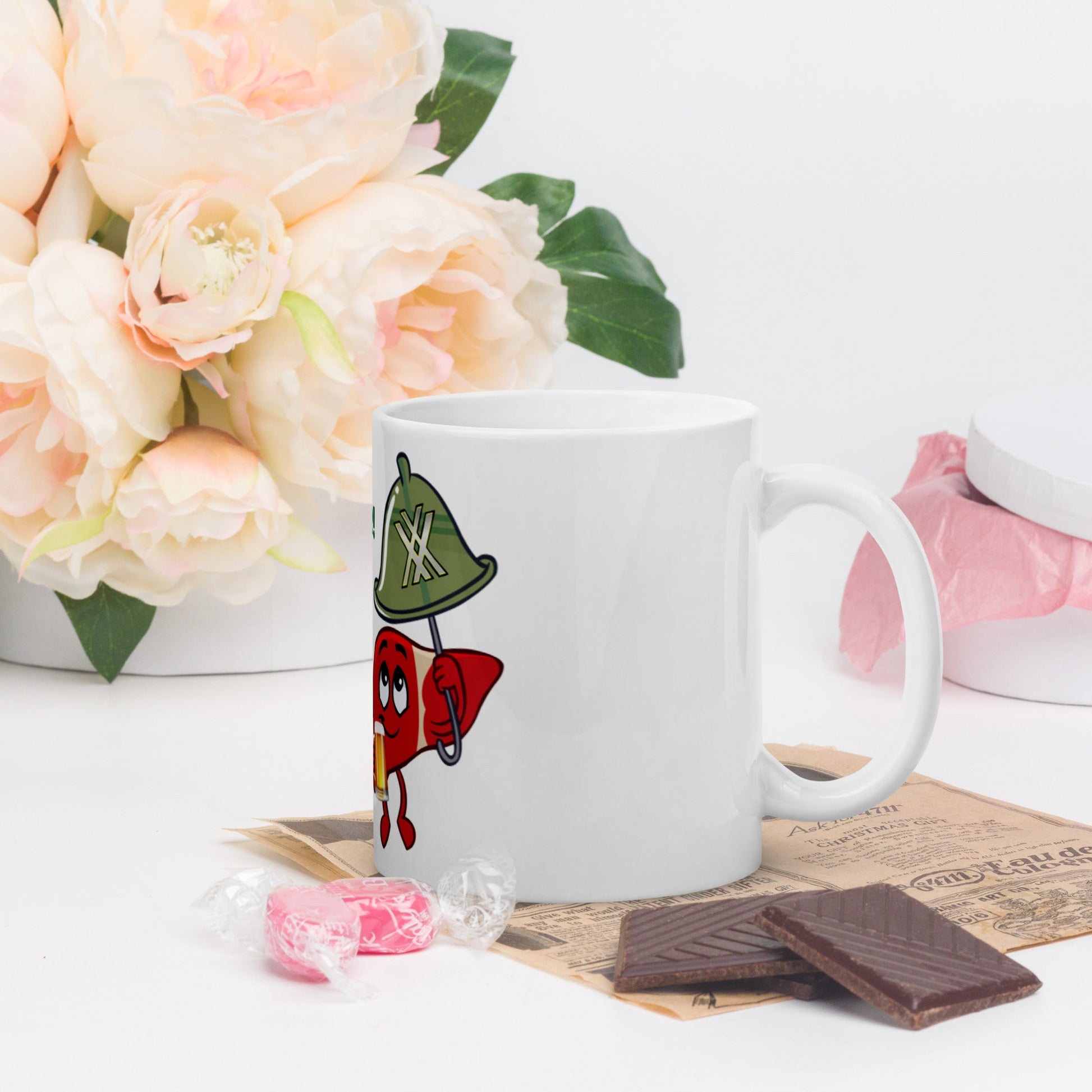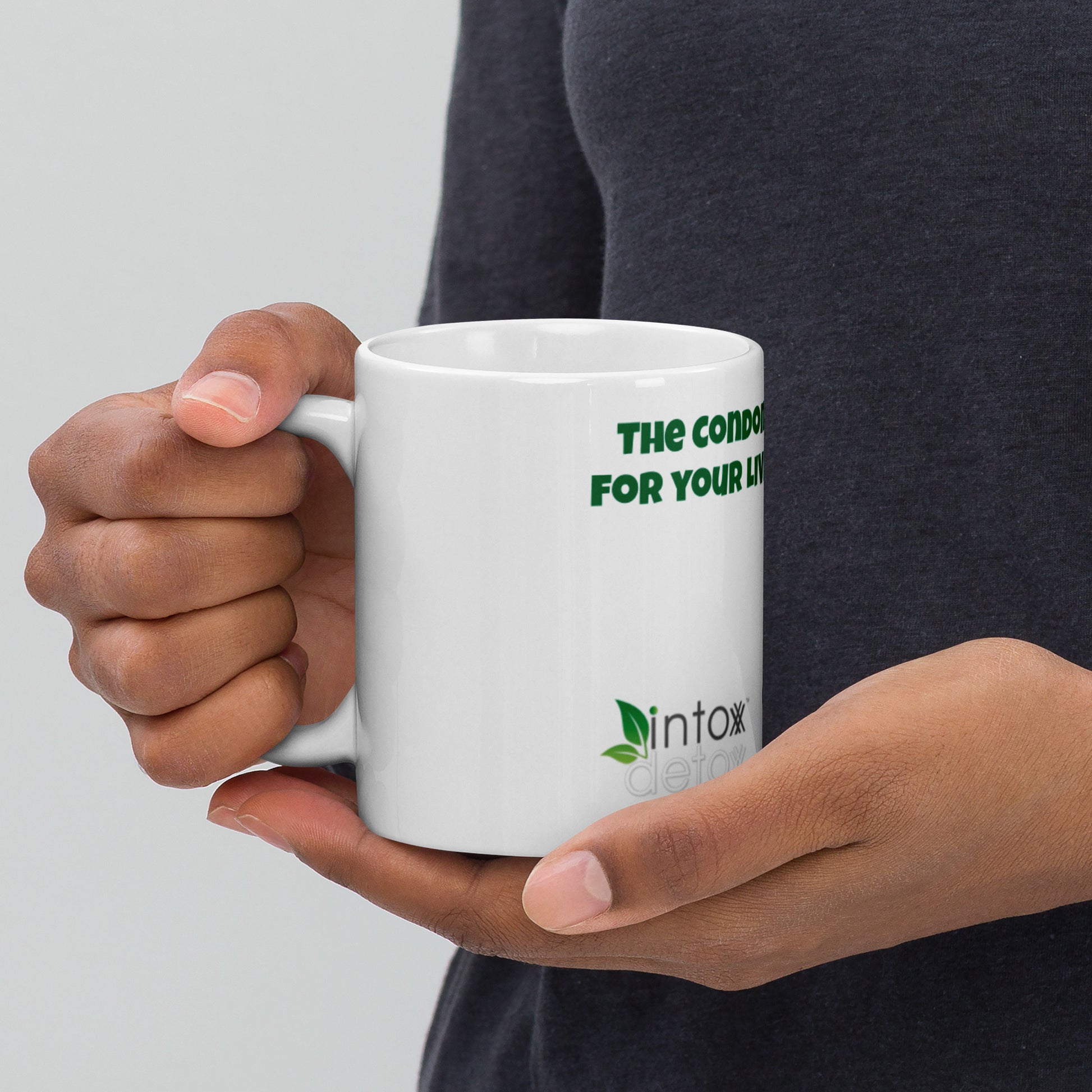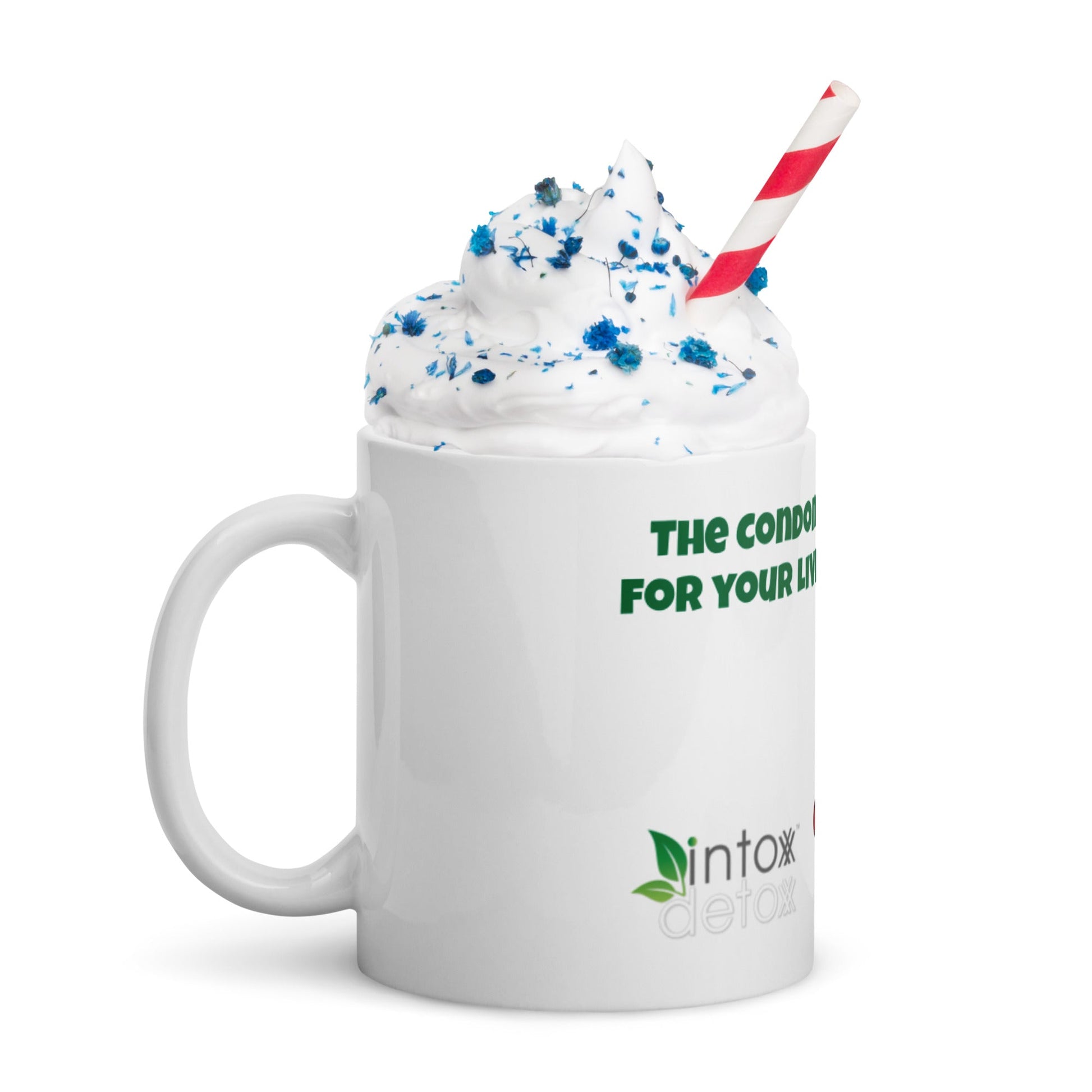 Celebrate your victory over hangovers with the Intox-Detox 'Condom for Your Liver" mug. Whether you're drinking your morning coffee, evening tea, or something in between – this mug's for you! It's sturdy and glossy with a vivid print that'll withstand the microwave and dishwasher.